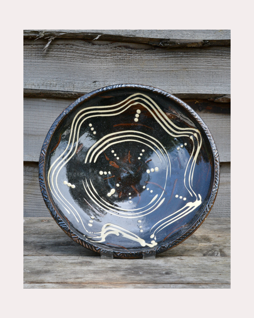 Adam handthrows bold and functional forms on the wheel and then uses slip to decorate them in fluid and abstract patterns creating warm, generous pieces for your home.