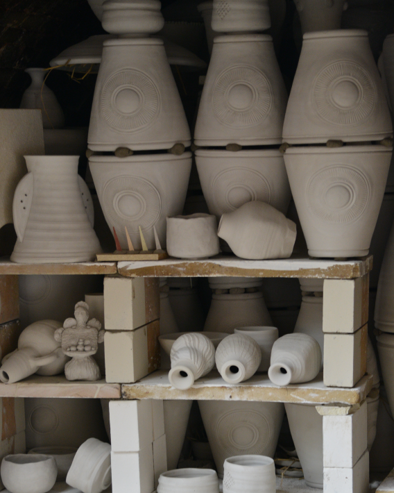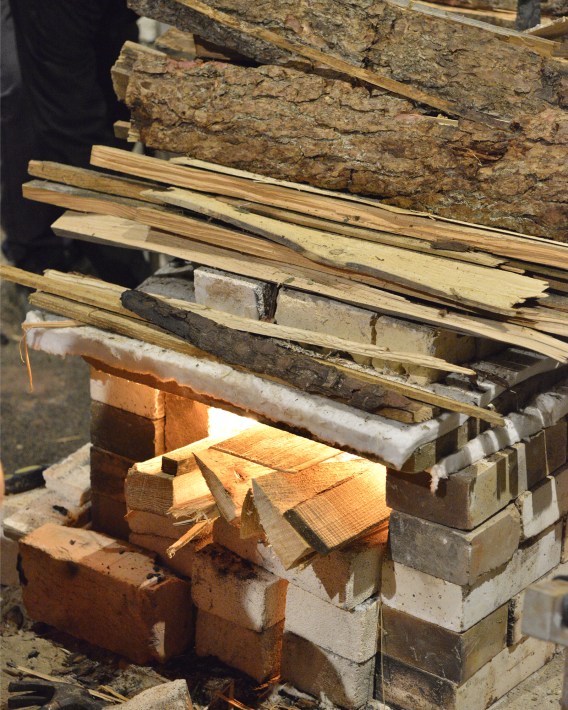 The woodfiring process itself is a great inspiration. The material (clay) and process (fire) together generate extraordinary textures and finishes. The many different dramatic effects are created simply by the flames themselves as they lick around the pots; or by melted wood ash which settles and sticks during the firing; or by deep coverings of white-hot embers. No two parts of the object are the same, each one telling its own story and we are very excited about what our team will be able to create and achieve!